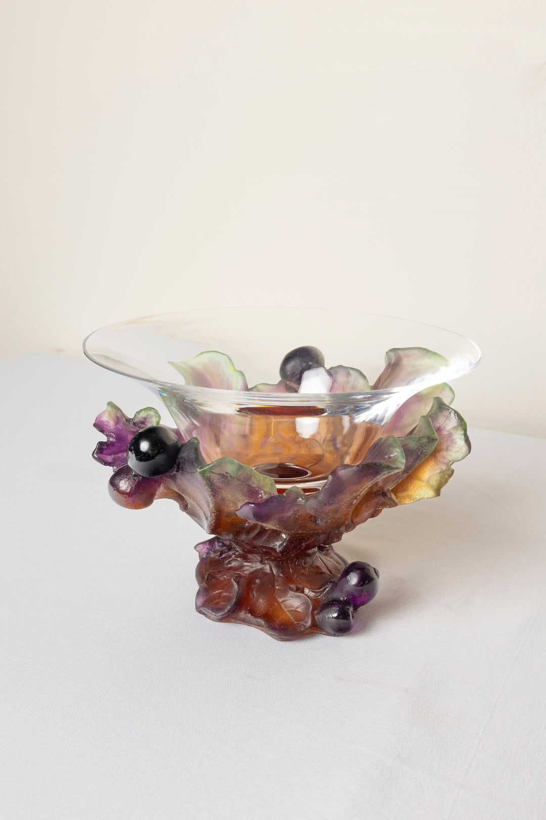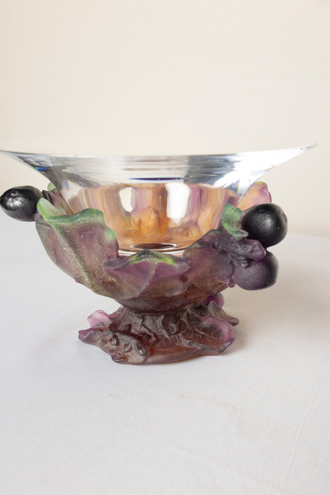 Daum France Pate-de-Verre "Figs and Lizard" Coupe Bowl