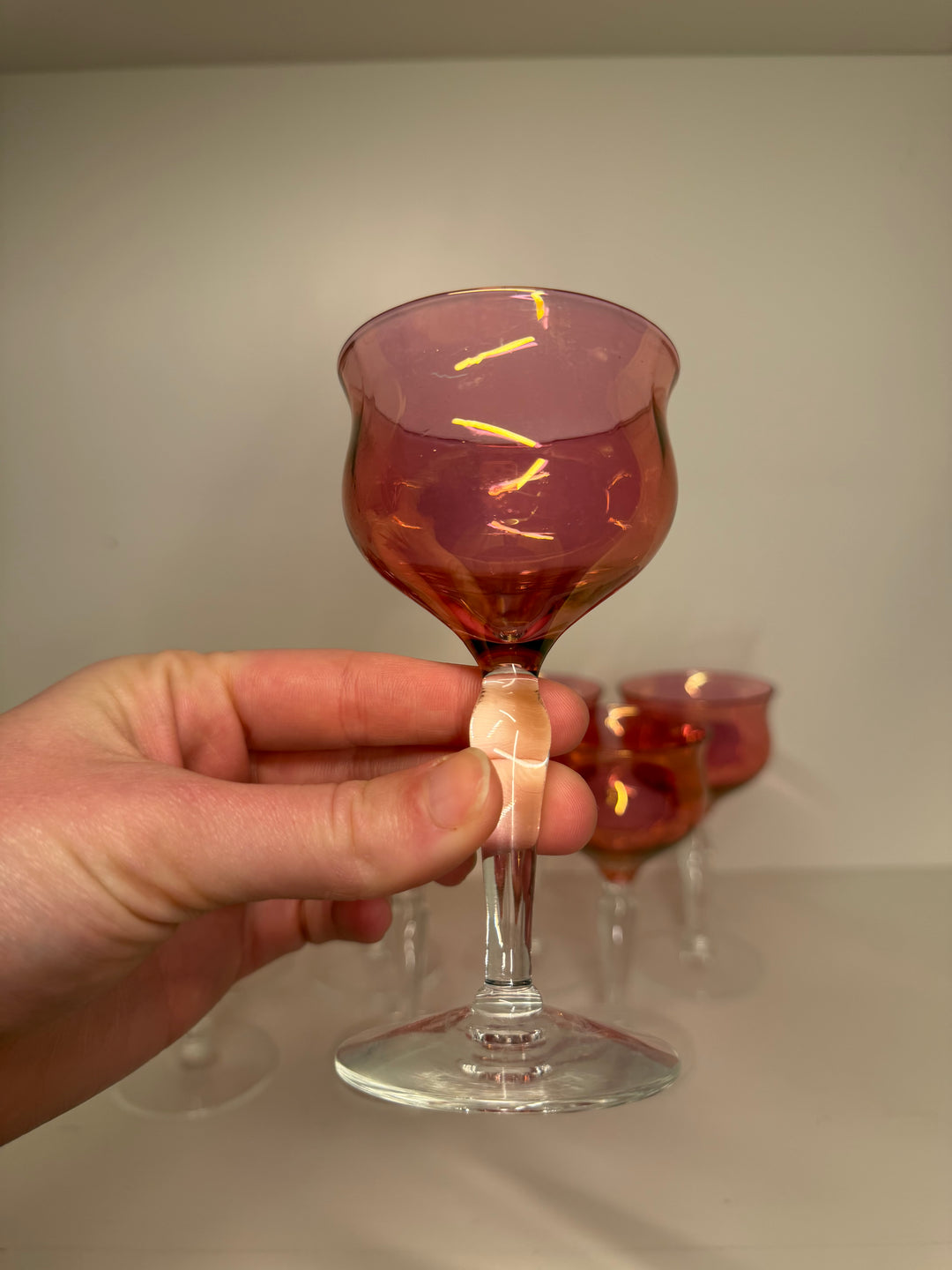 Vintage Cranberry Iridescent Glass Coupes - Set of 8
