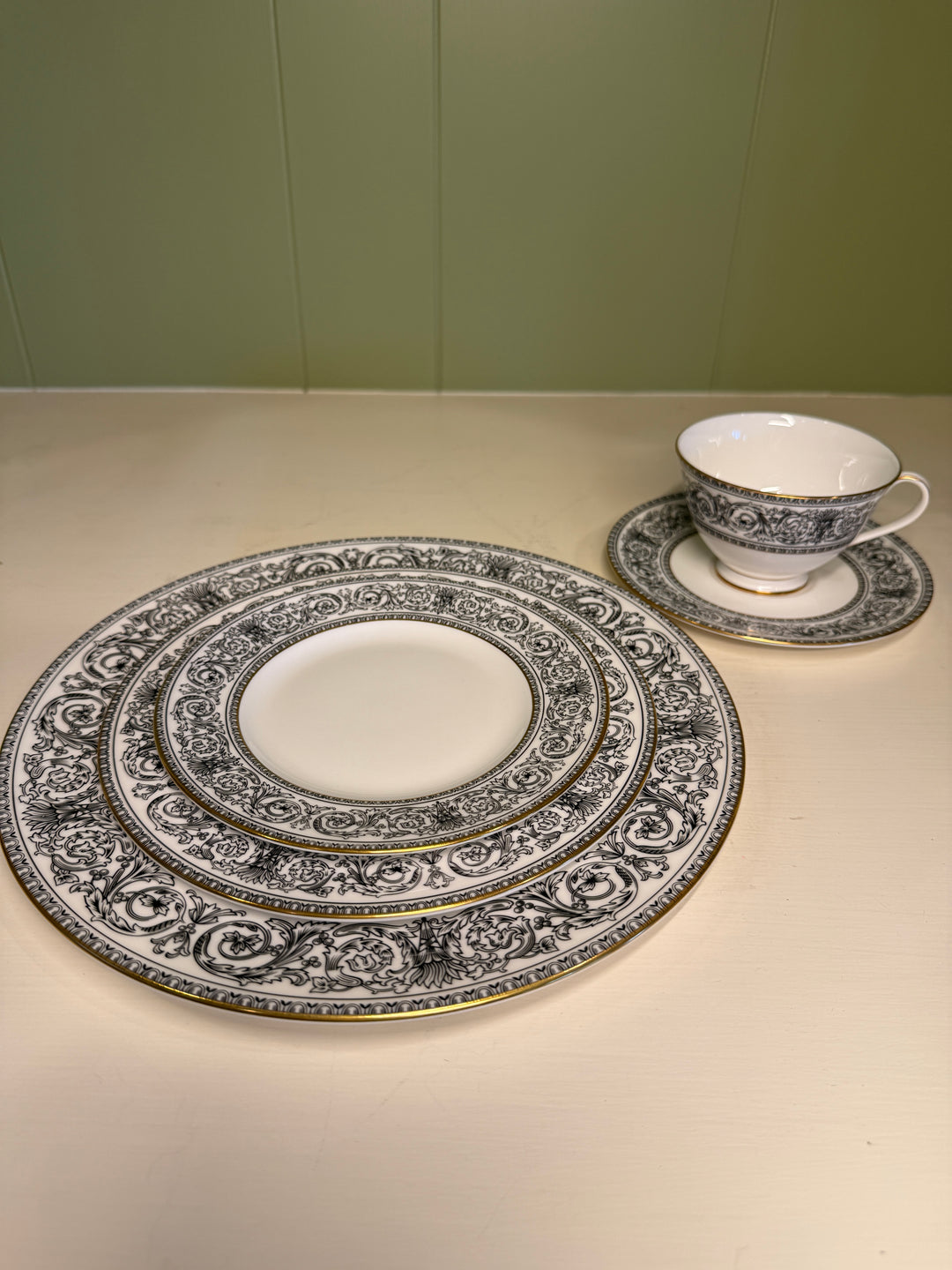Royal Doulton Baronet Set (12 Dinner plates, 12 salad plates, 11 saucers, 11 teacups, 2 b&b plates)